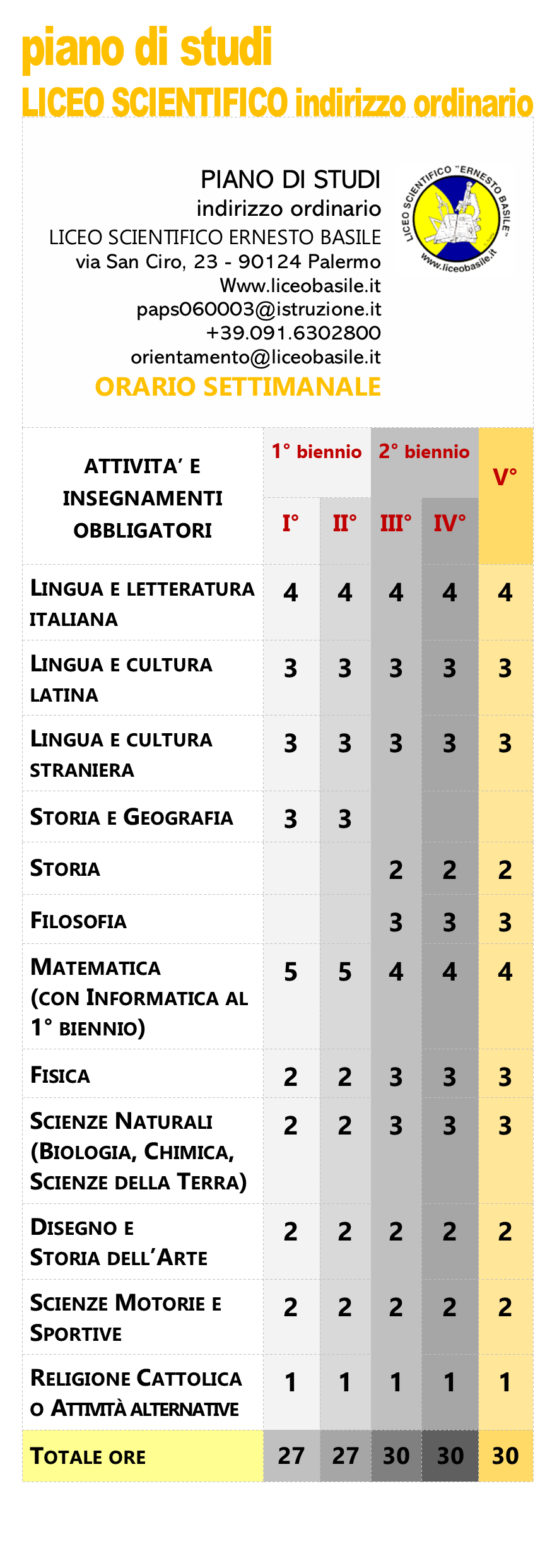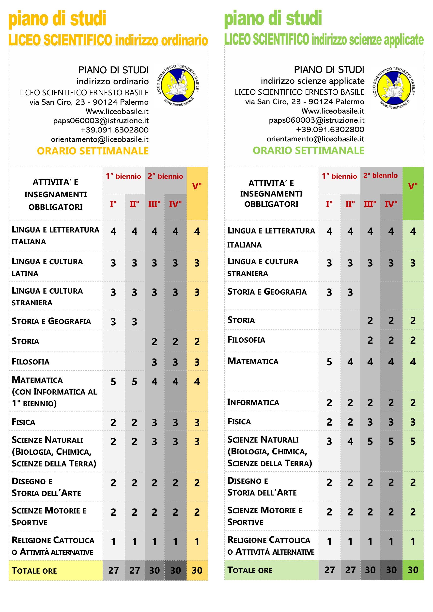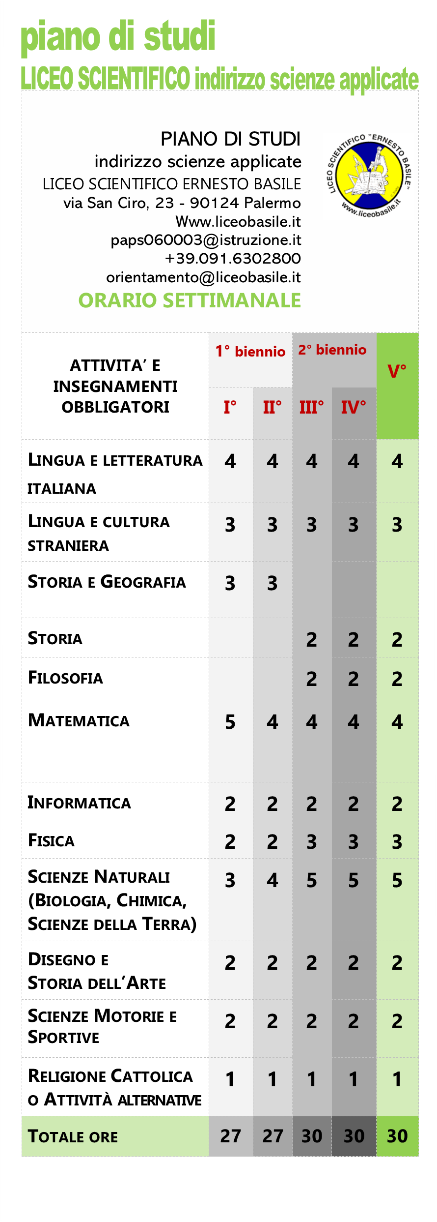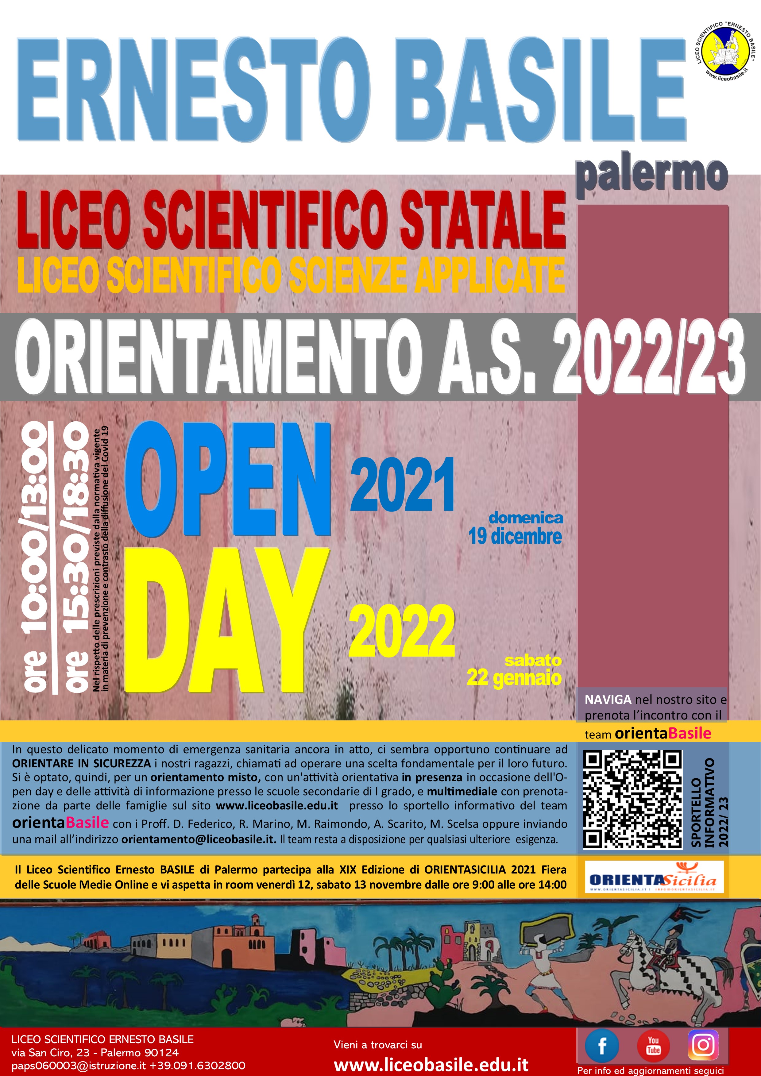 Il personale e gli studenti del Liceo scientifico statale Ernesto Basile di Palermo saranno lieti di accogliervi presso la sede dell’Istituto in via San Ciro n.23, per la visita degli spazi della didattica e dei laboratori oltre che per informarvi sull’Offerta Formativa.