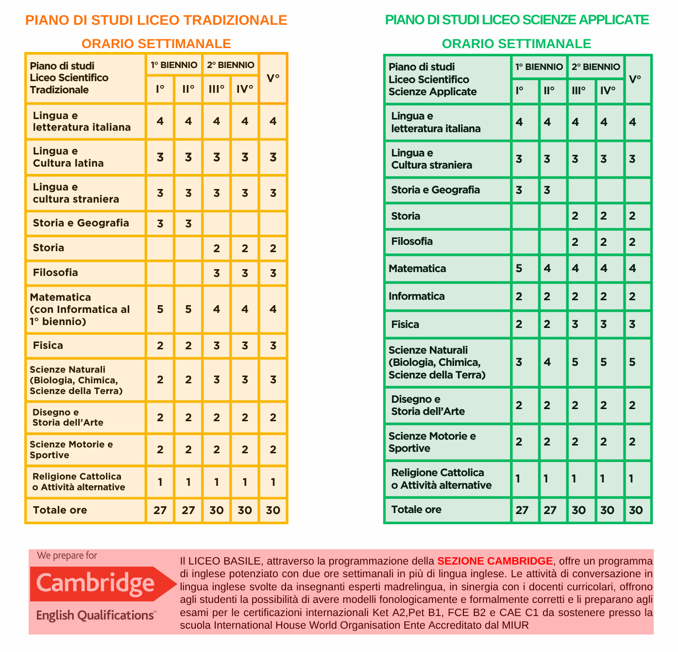 LICEO SCIENTIFICO TRADIZIONALE che offre: