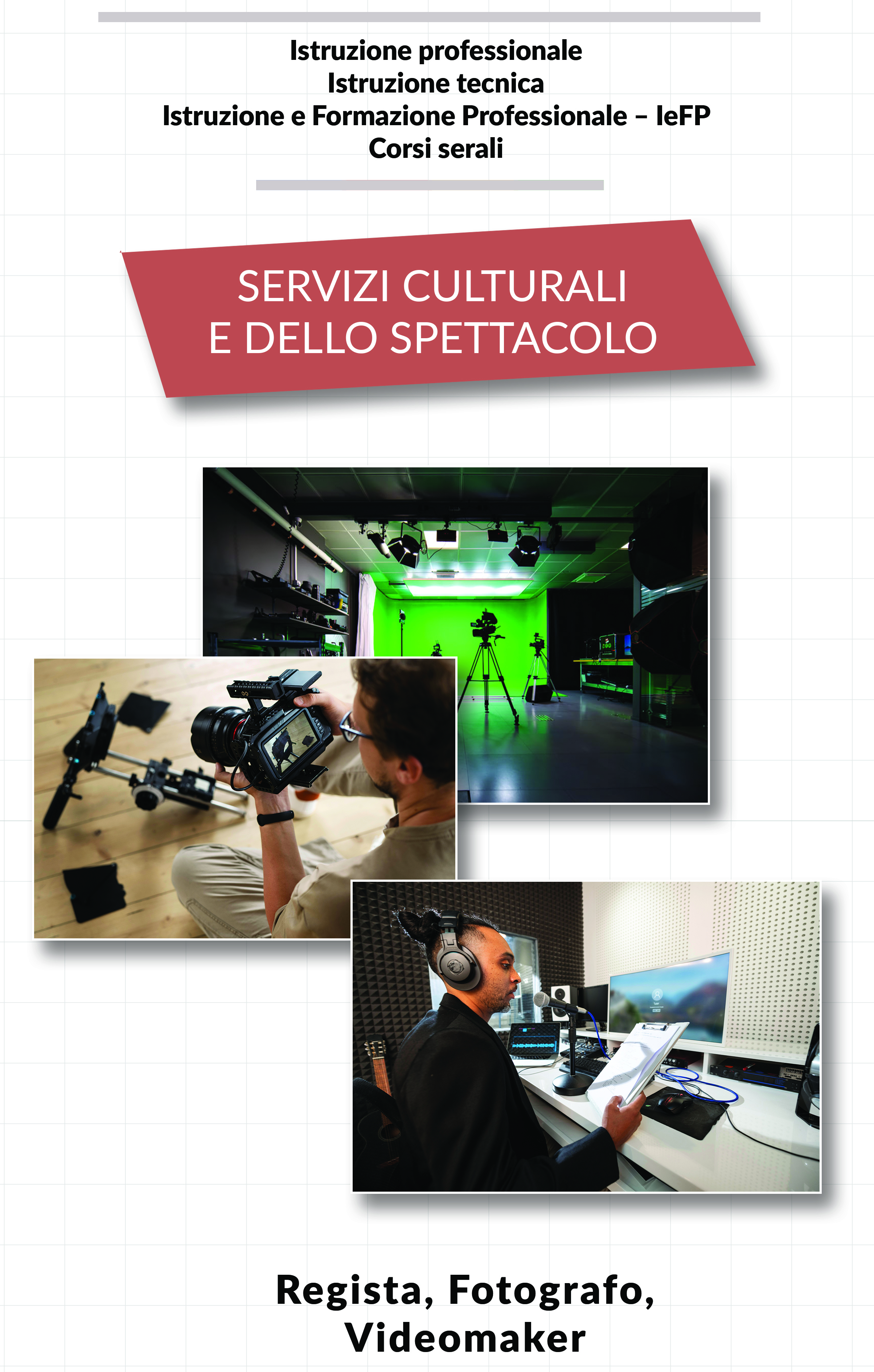 Con Servizi Culturali e dello Spettacolo racconti il mondo attraverso l’immagine: fotografia, audiovisivo, grafica e comunicazione diventano i tuoi linguaggi.