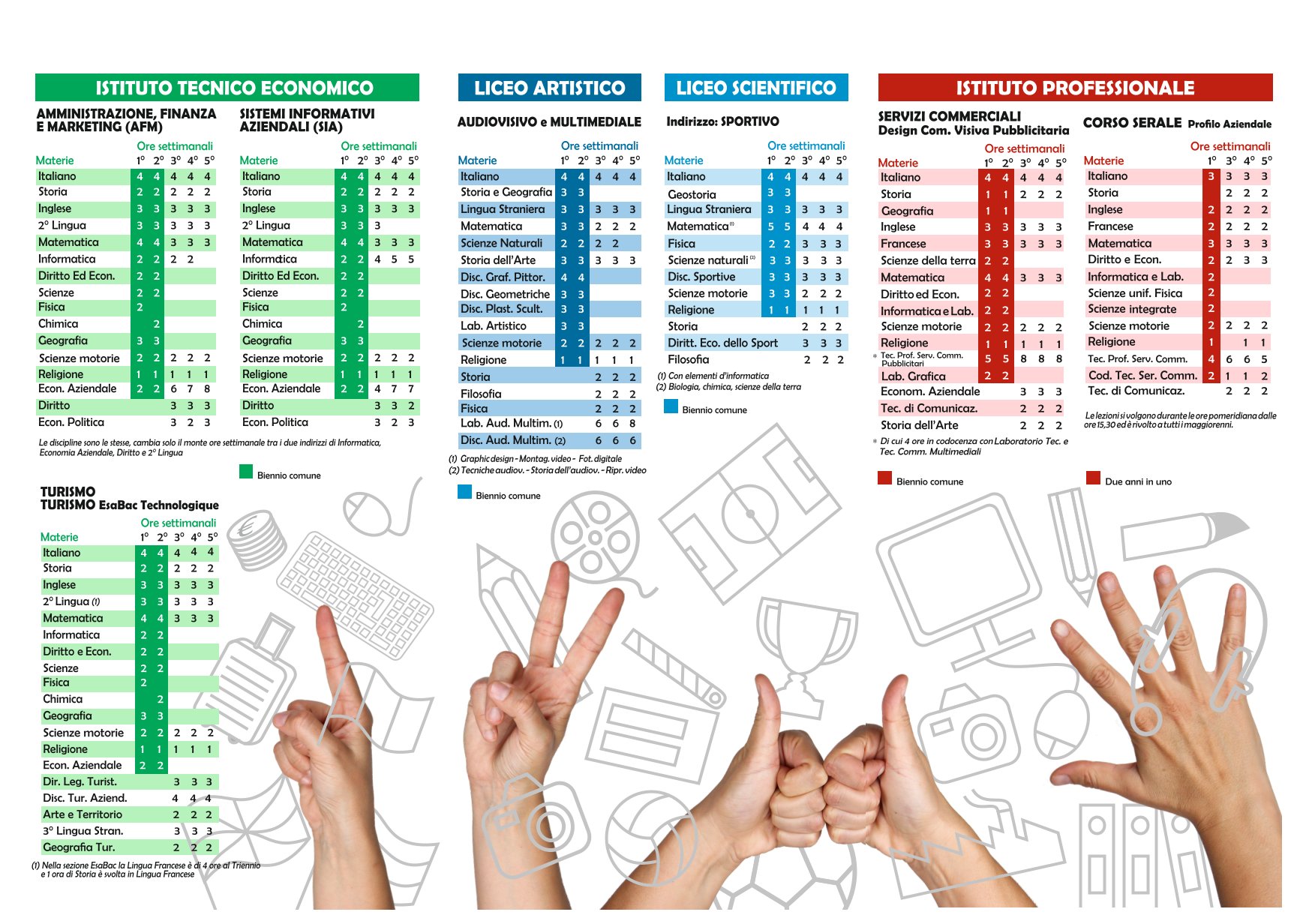 Attualmente l’Istituto si configura come Istituto d’Istruzione Secondaria Superiore con l’Istituto Tecnico, settore economico, con gli indirizzi “Amministrazione Finanza e Marketing”, Amministrazione Finanza e Marketing - Management Sportivo” - “Turismo” e “Sistemi Informativi Aziendali”; il Liceo Artistico Audiovisivo Multimediale, il Liceo Scientifico Sportivo e l’Istituto Professionale per i Servizi Commerciali, corso diurno e serale. Dall’A.S. 2015/2016 è presente un indirizzo turismo ESABAC/TECHNO.